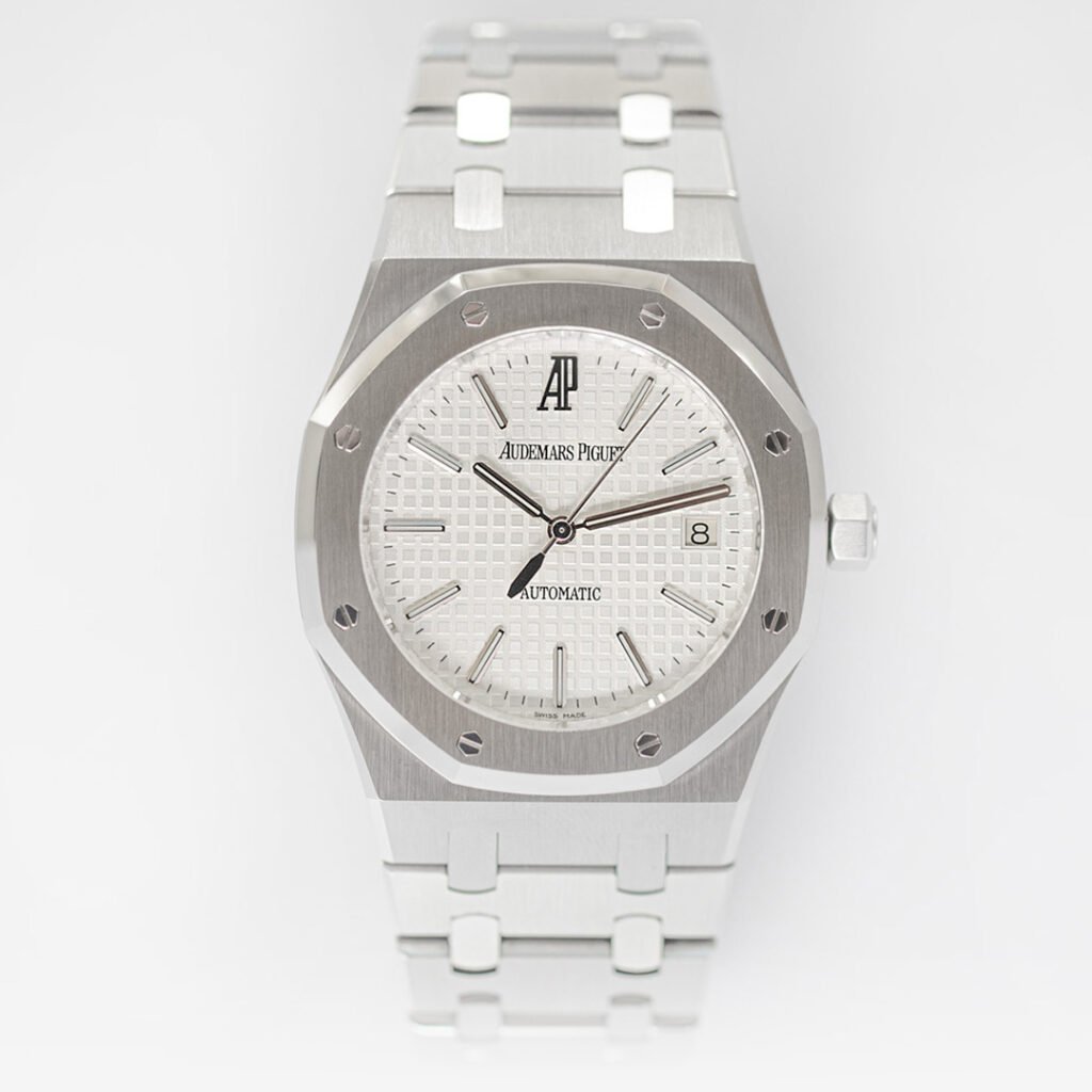 Encased in a 36 mm stainless steel body, the watch exudes an air of refined strength. The white gold fluted bezel surrounding the watch face adds a touch of luxury without compromising the piece’s versatile appeal. Its silvery/white dial provides a perfect canvas for the watch’s diamond-set hour markers.